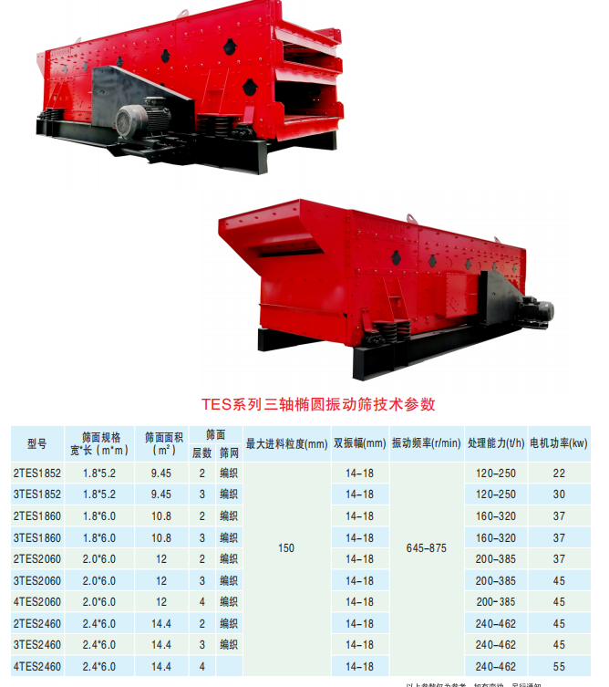 应用领域三轴椭圆振动筛本系列适用于各种矿山、石矿场、移动式筛分站